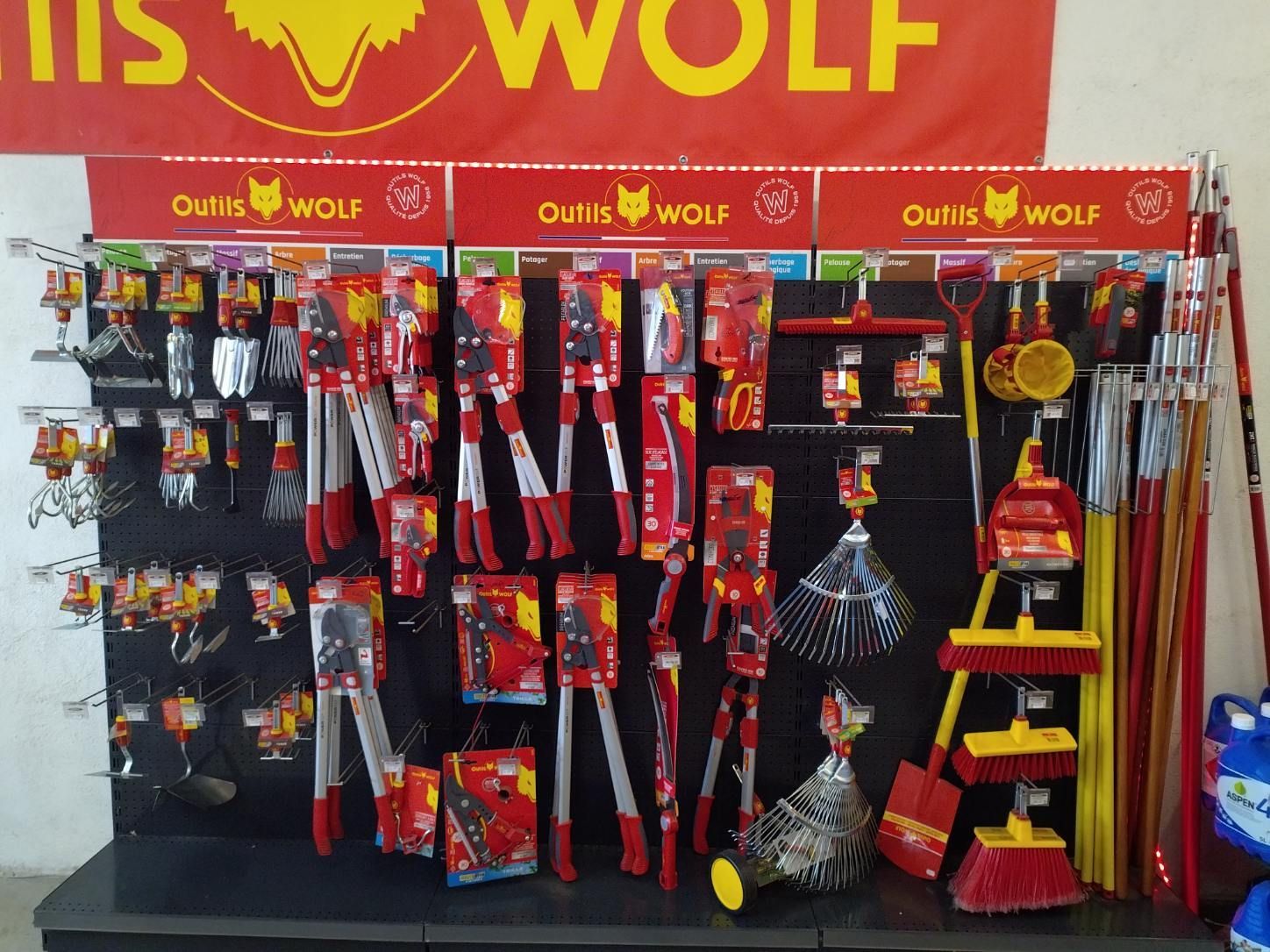 Nous proposons sur nos deux magasins un large choix d'outils de la marque WOLF pour professionnel et particulier comme des perches télescopique jusqu'à 4 mètres d'extension, des râteaux à feuille de différente taille, des sécateurs pour toutes les utilisation possible et bien plus encore ! ( avec possibilité de commander si le produit n'est pas disponible en magasin )